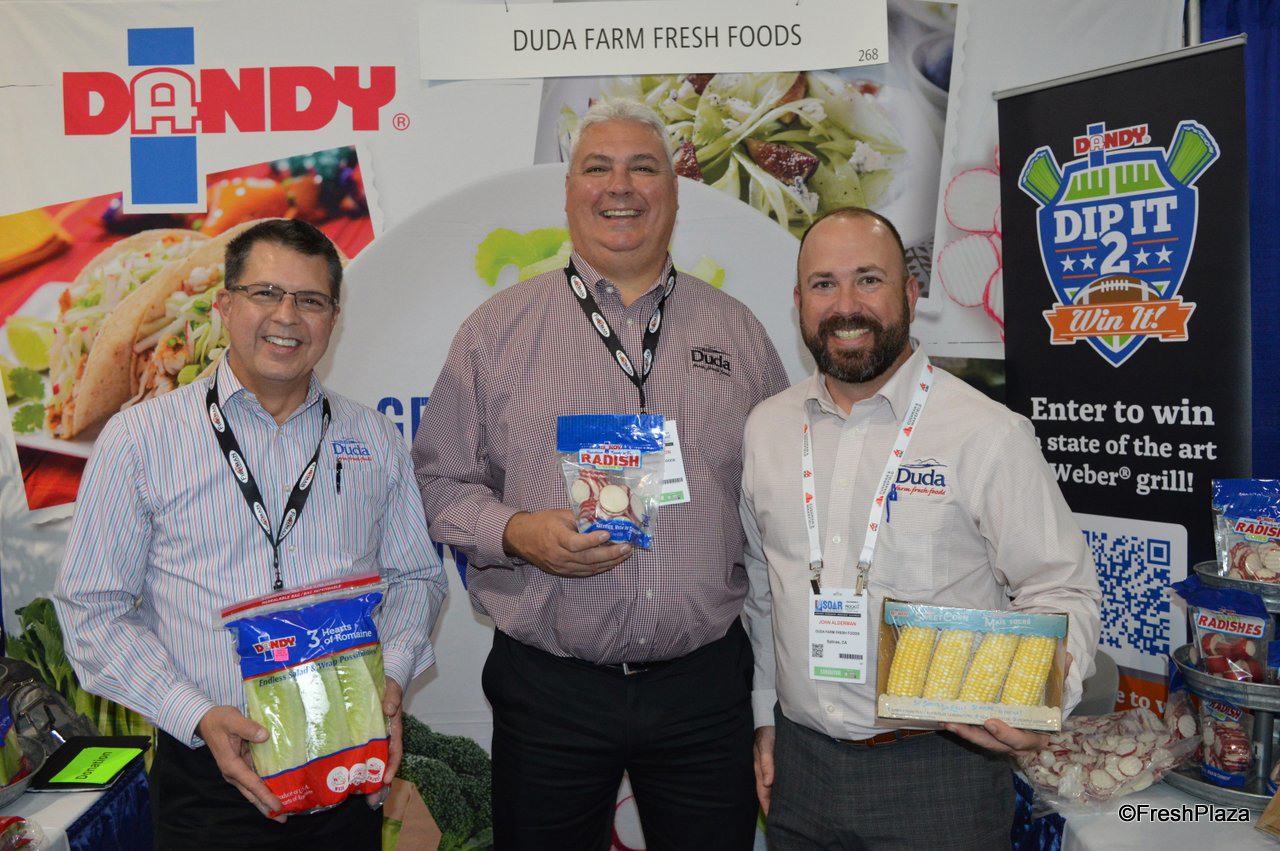 Showing Romaine hearts, radish and corn are Tim Ross, Shayne Gordon and John Alderman with Duda Farm Fresh Foods.
