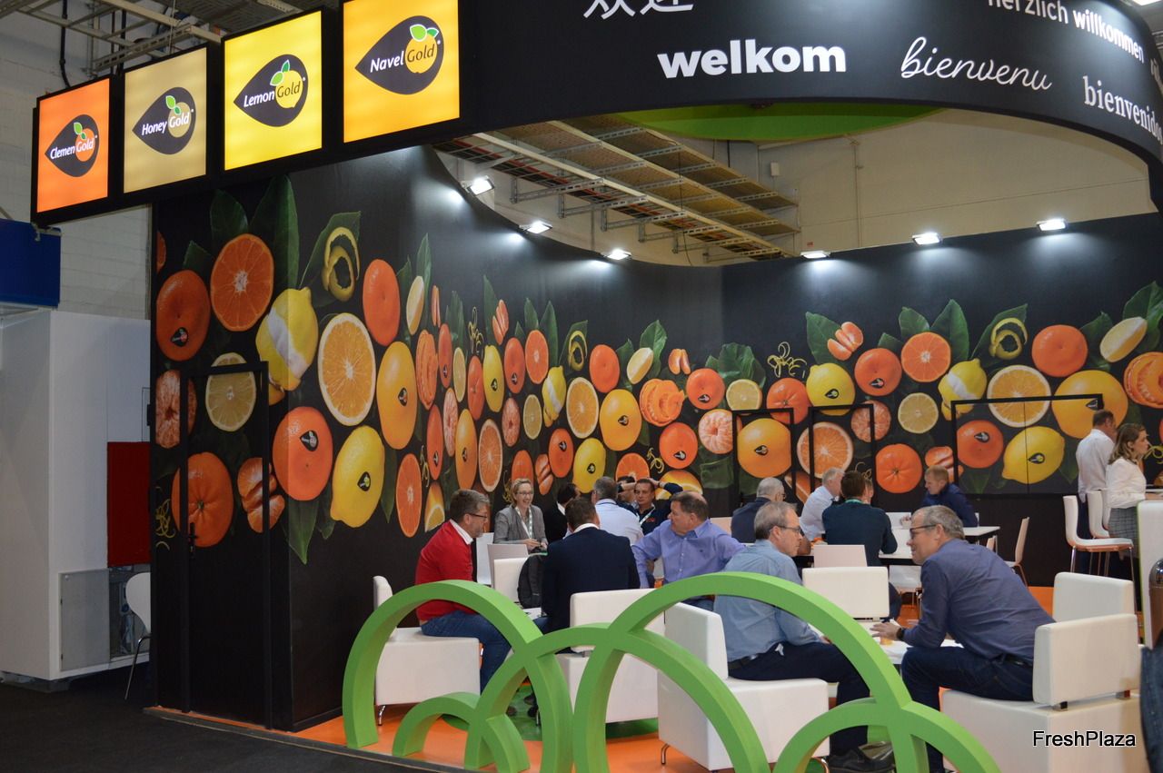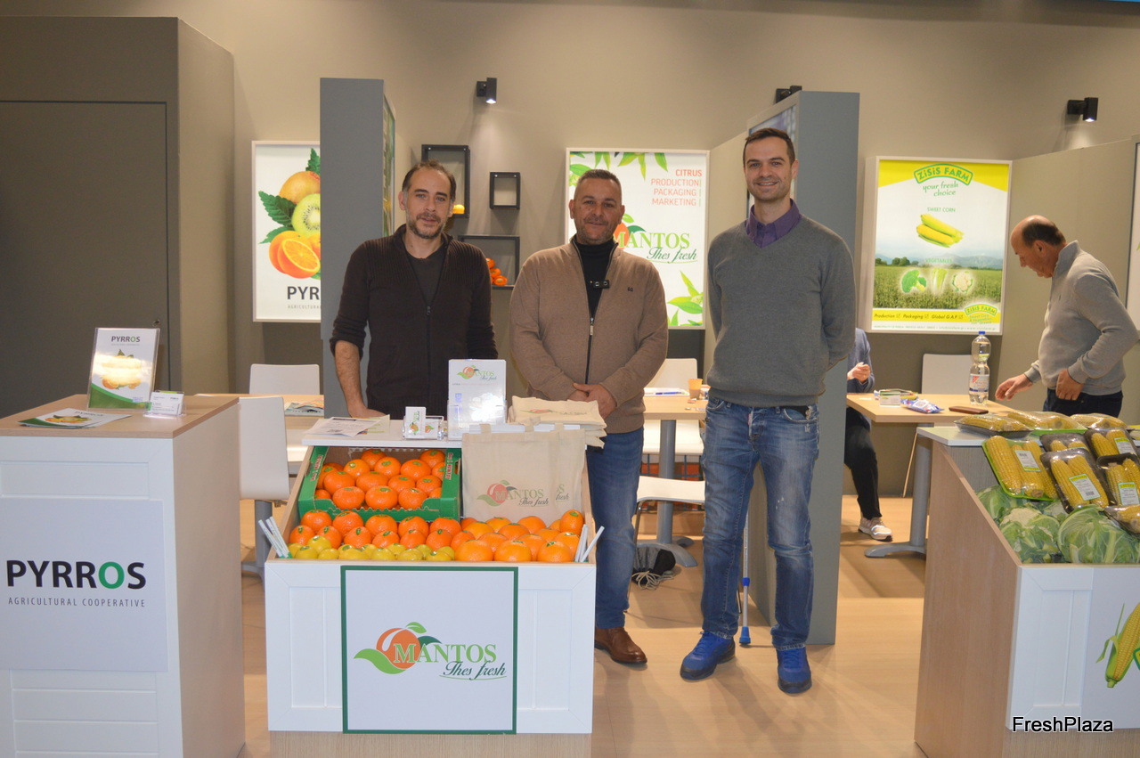 On the left is Giogos Mantos, together with his Mantos-team to showcase their Greek citrus.