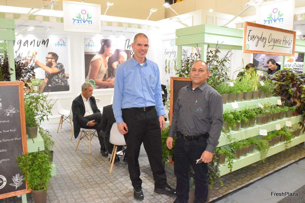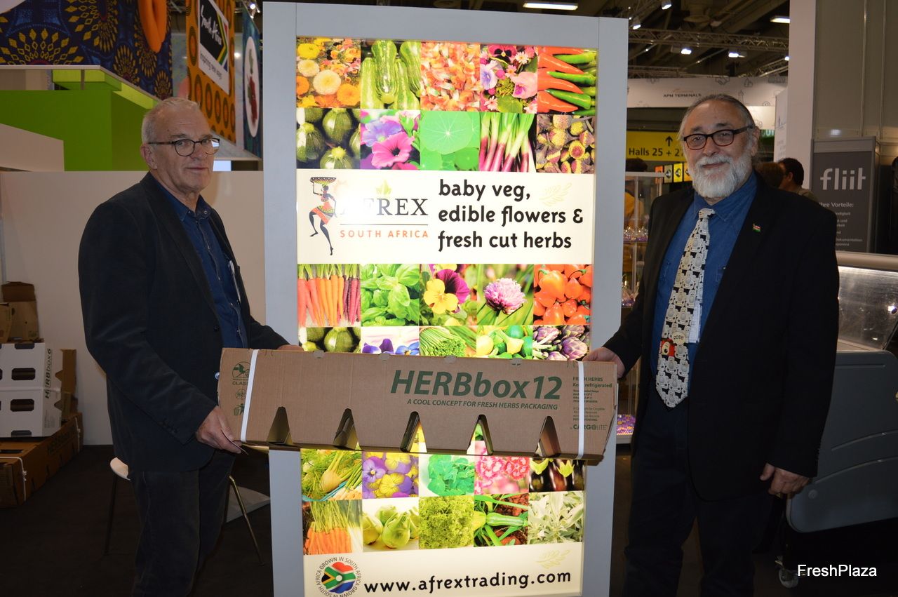 John Kowarsky from AFREX and Amnon Zamir from CargoLite with a new solution for shipping fresh herbs, it is sturdy and has good air flow so that the herbs can be placed closer together which is more cost effective.