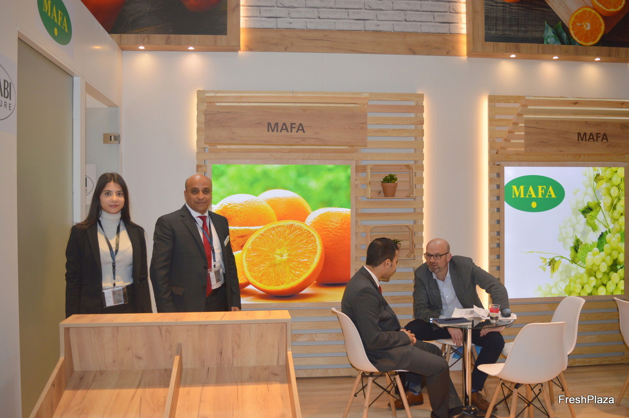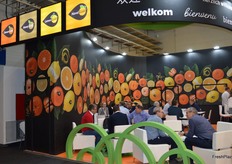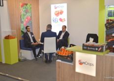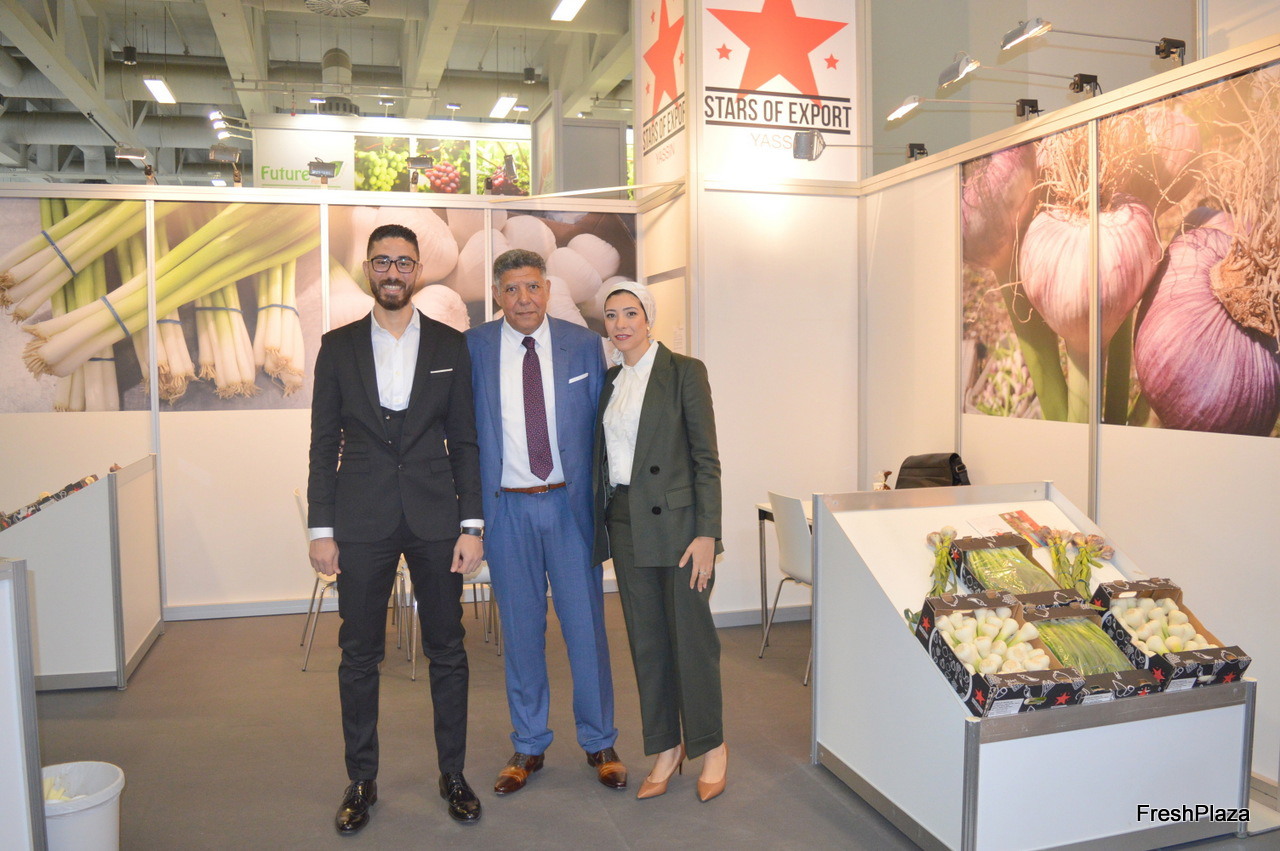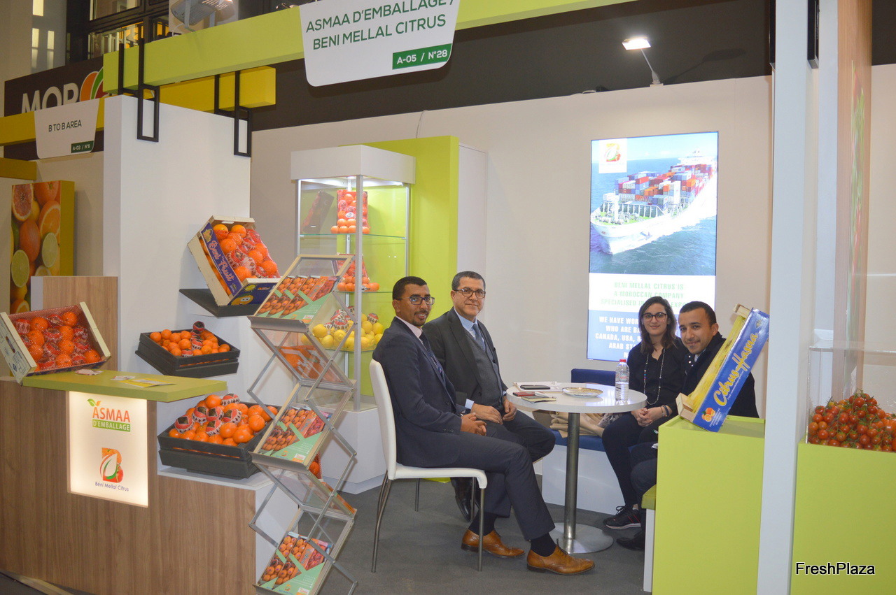 Oussama Ghissassi, Faisal Hassan Labban and Nordine Laayouni at the Clementina stand. The Moroccan exporters deal in citrus.