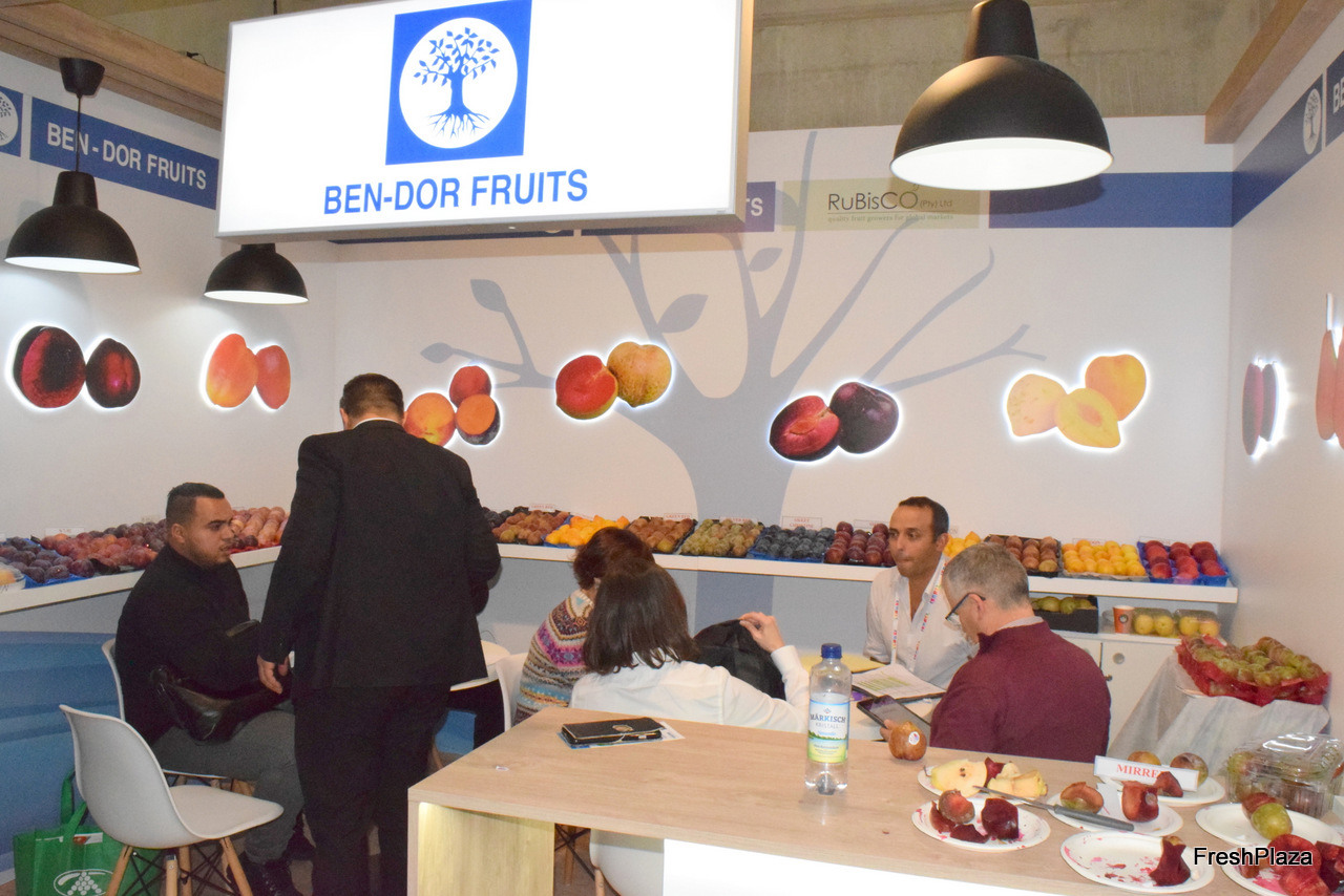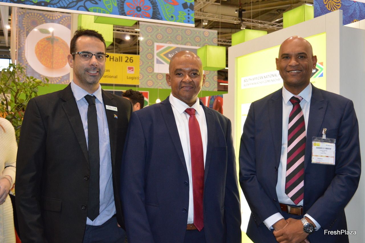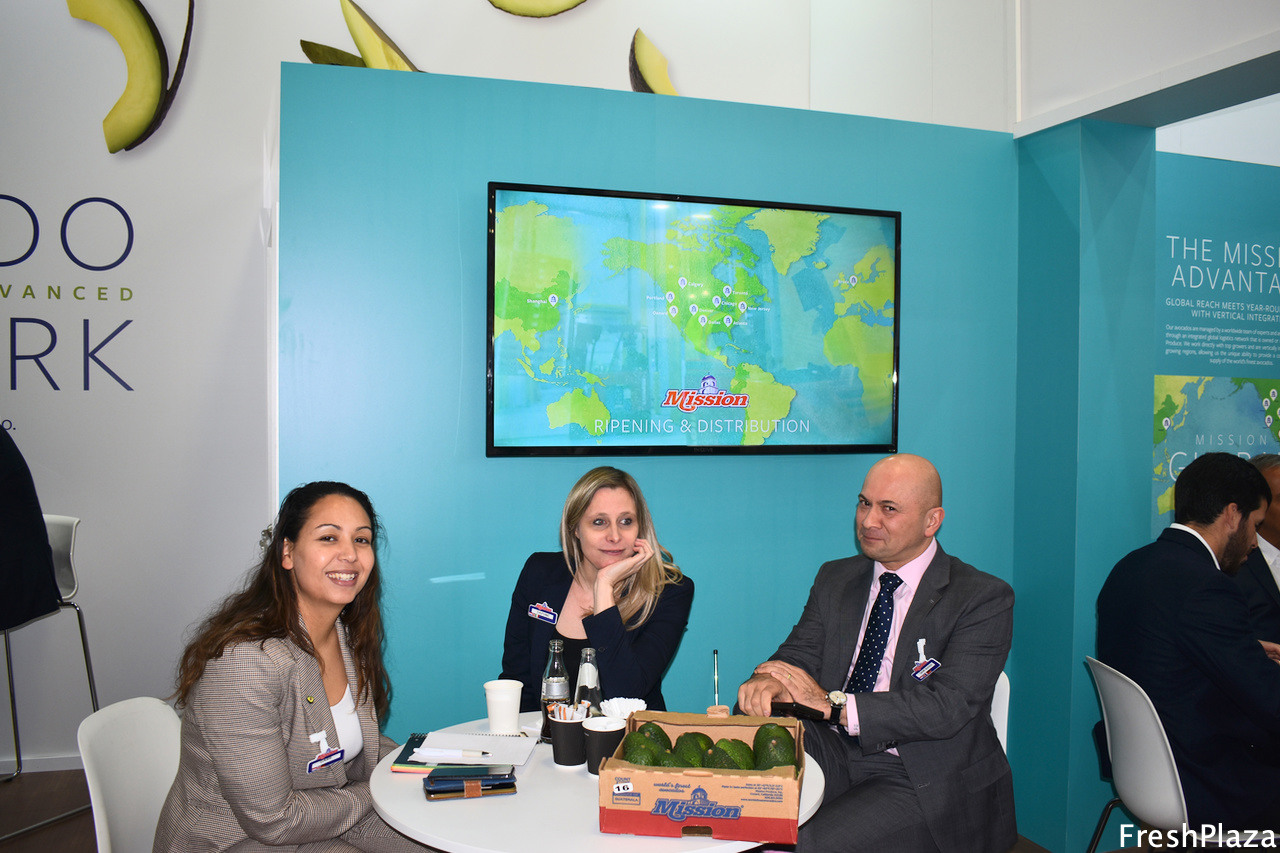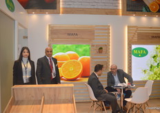 Oussama Ghissassi, Faisal Hassan Labban and Nordine Laayouni at the Clementina stand. The Moroccan exporters deal in citrus.