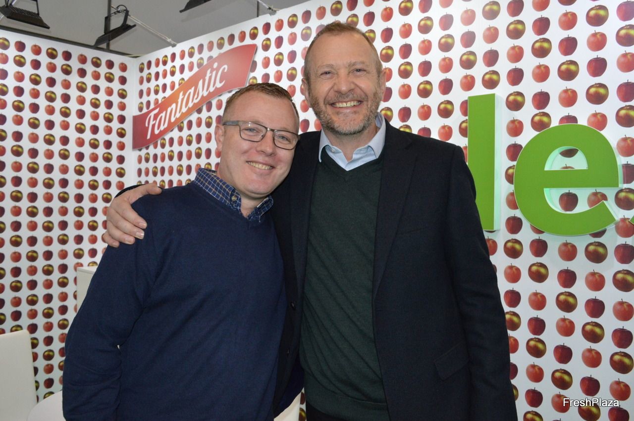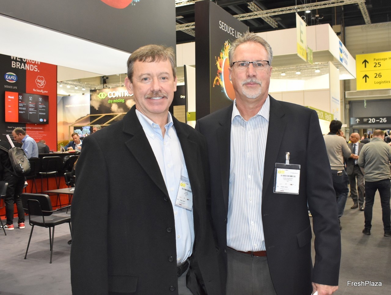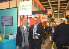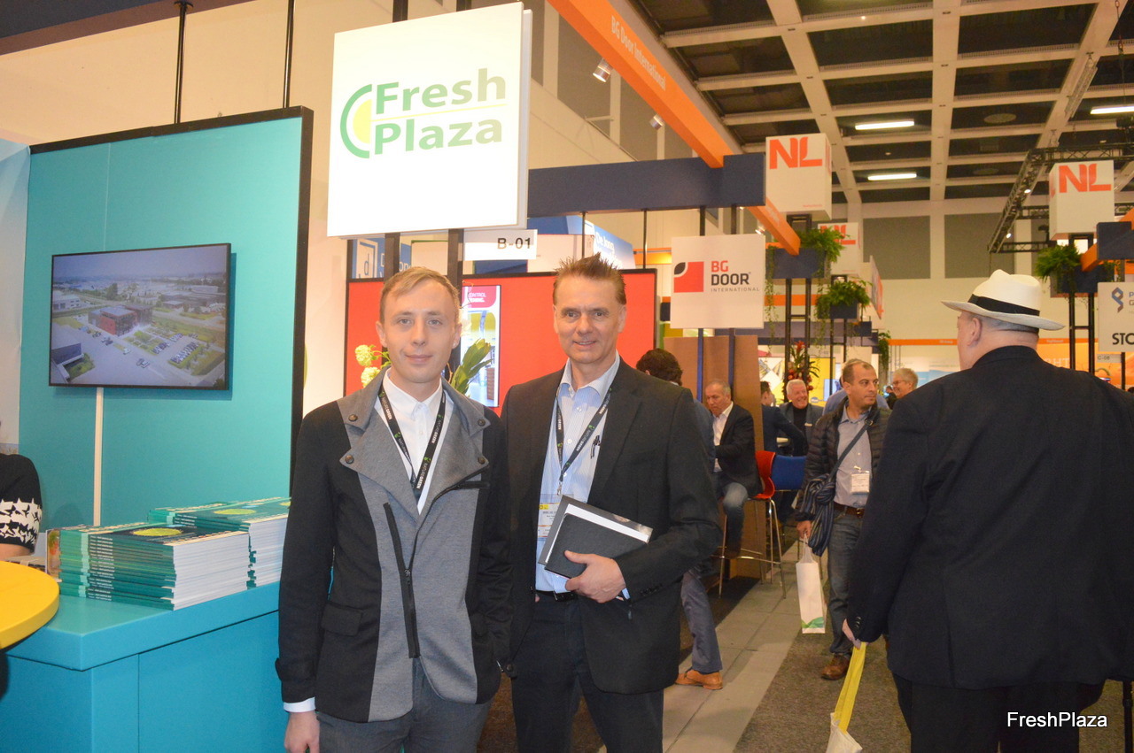 On the left is Peter Sutherland, Sales Manager and on the right is Mark Patrick Wade, Business Development for Ukrainian exporter NatureGreen coming to visit the FreshPlaza stand.