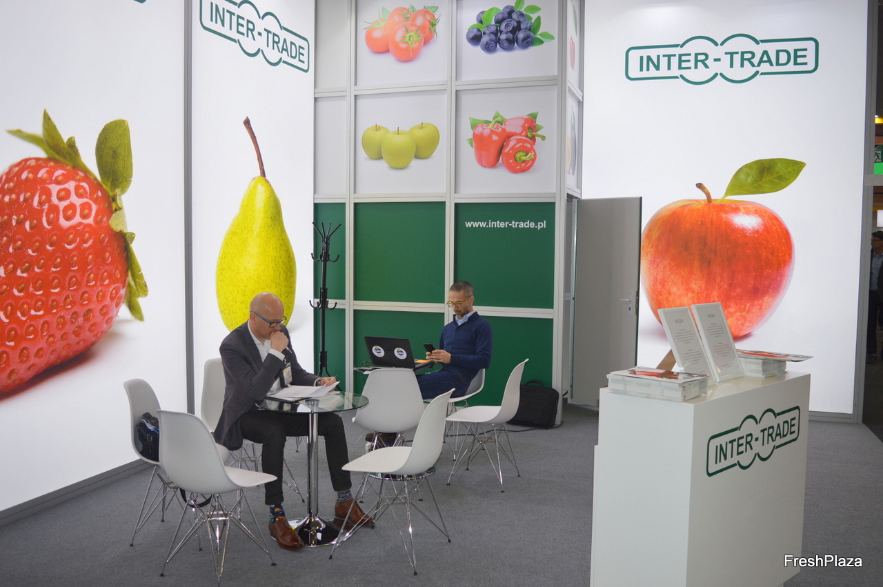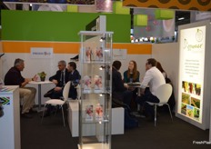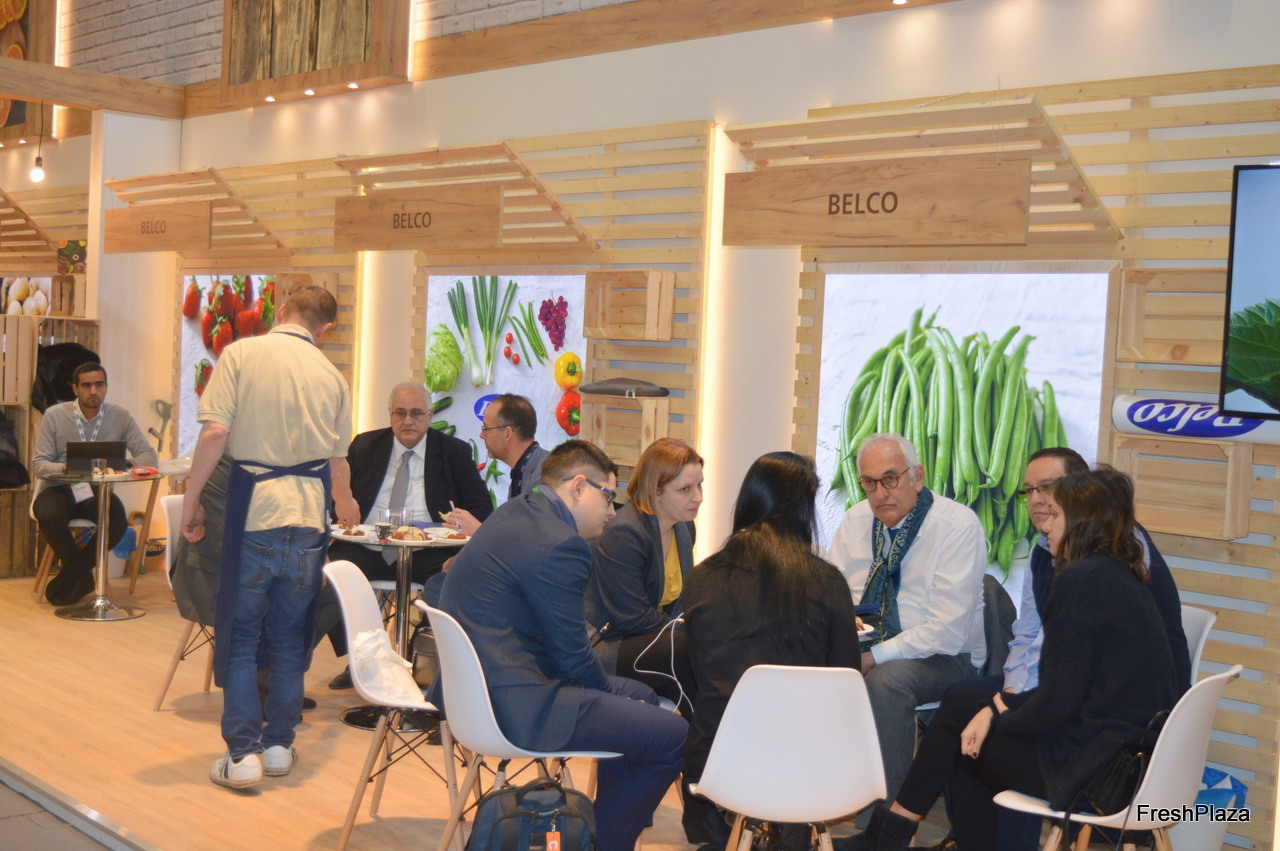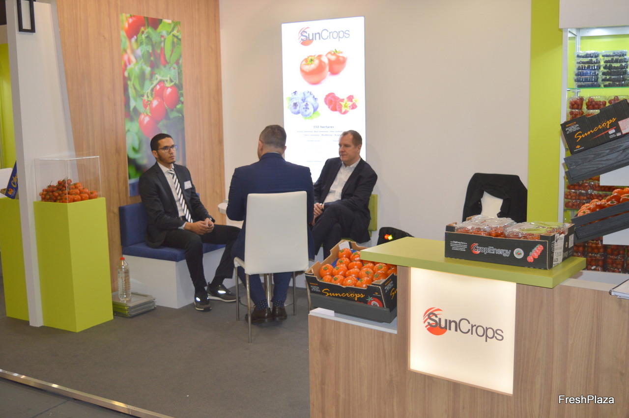 On the right is Tomasz Glaza of SunCrops, busy in a meeting. The Polish exporters deal in soft fruits and a variety of vegetables, like tomatoes and peppers.