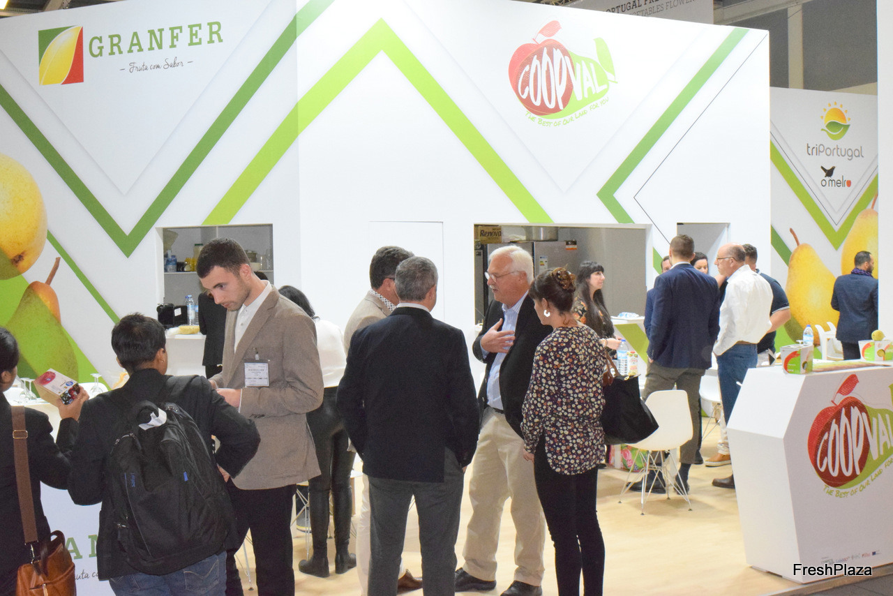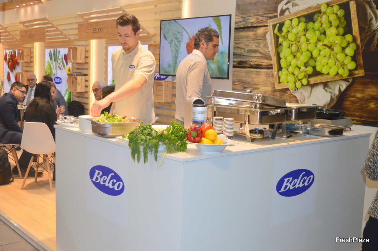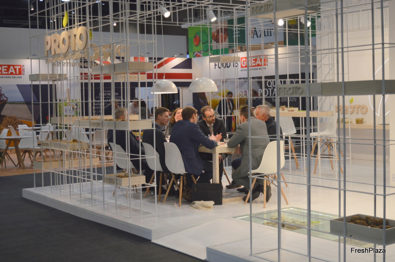On the right is Tomasz Glaza of SunCrops, busy in a meeting. The Polish exporters deal in soft fruits and a variety of vegetables, like tomatoes and peppers.