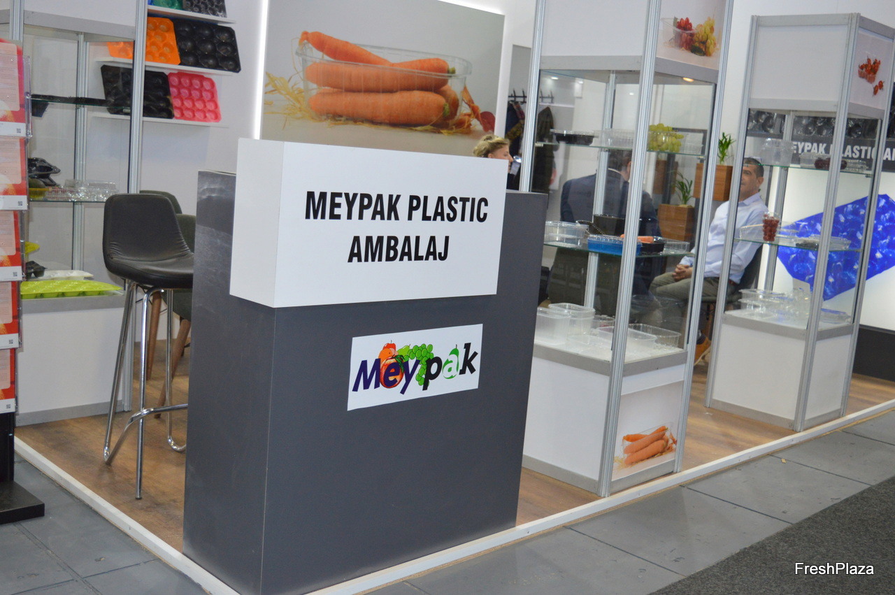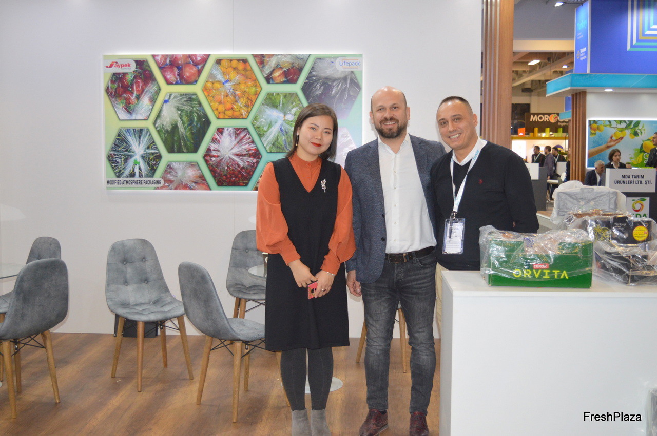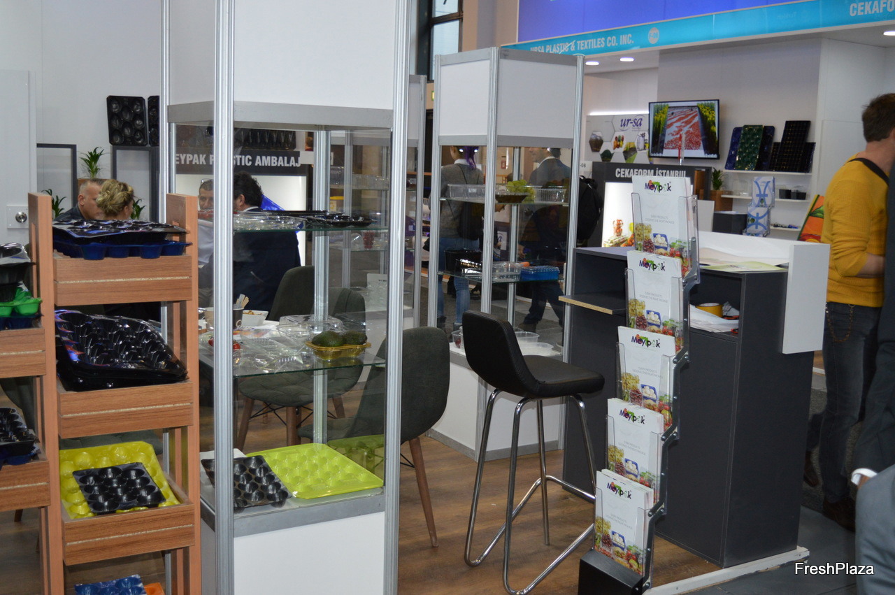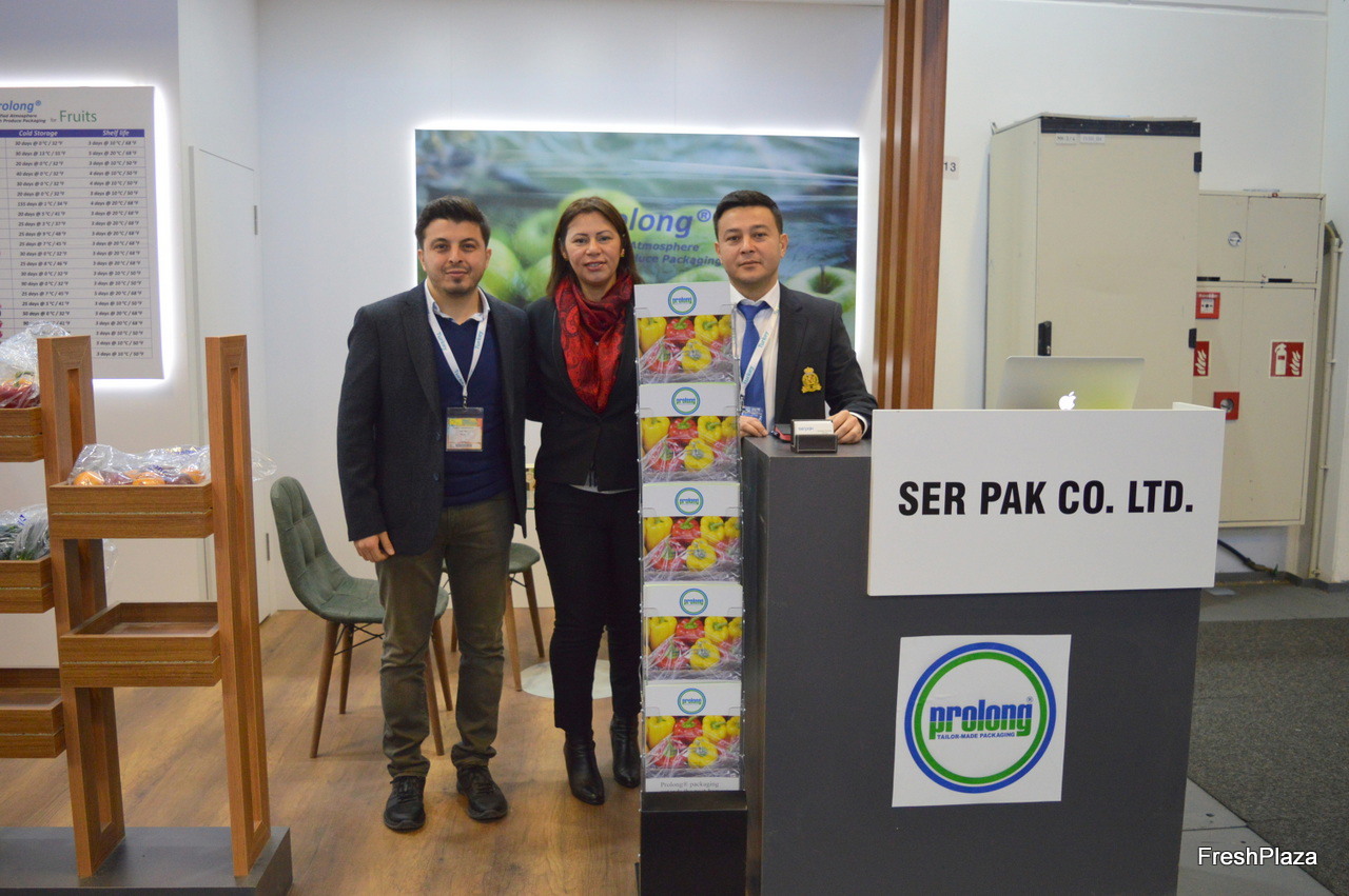 Ebubekir Tulpar and the Ser Pak team. They were presenting their plastic packaging, designed to pack fresh produce.