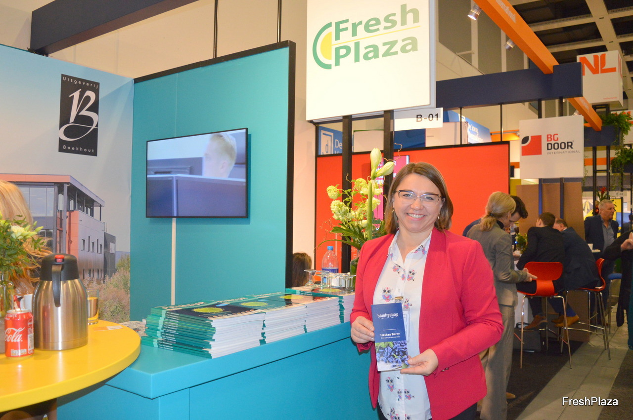 Anna Litwin, founder of Polish haskapberry trading company BlueHaskap, visiting the FreshPlaza stand.