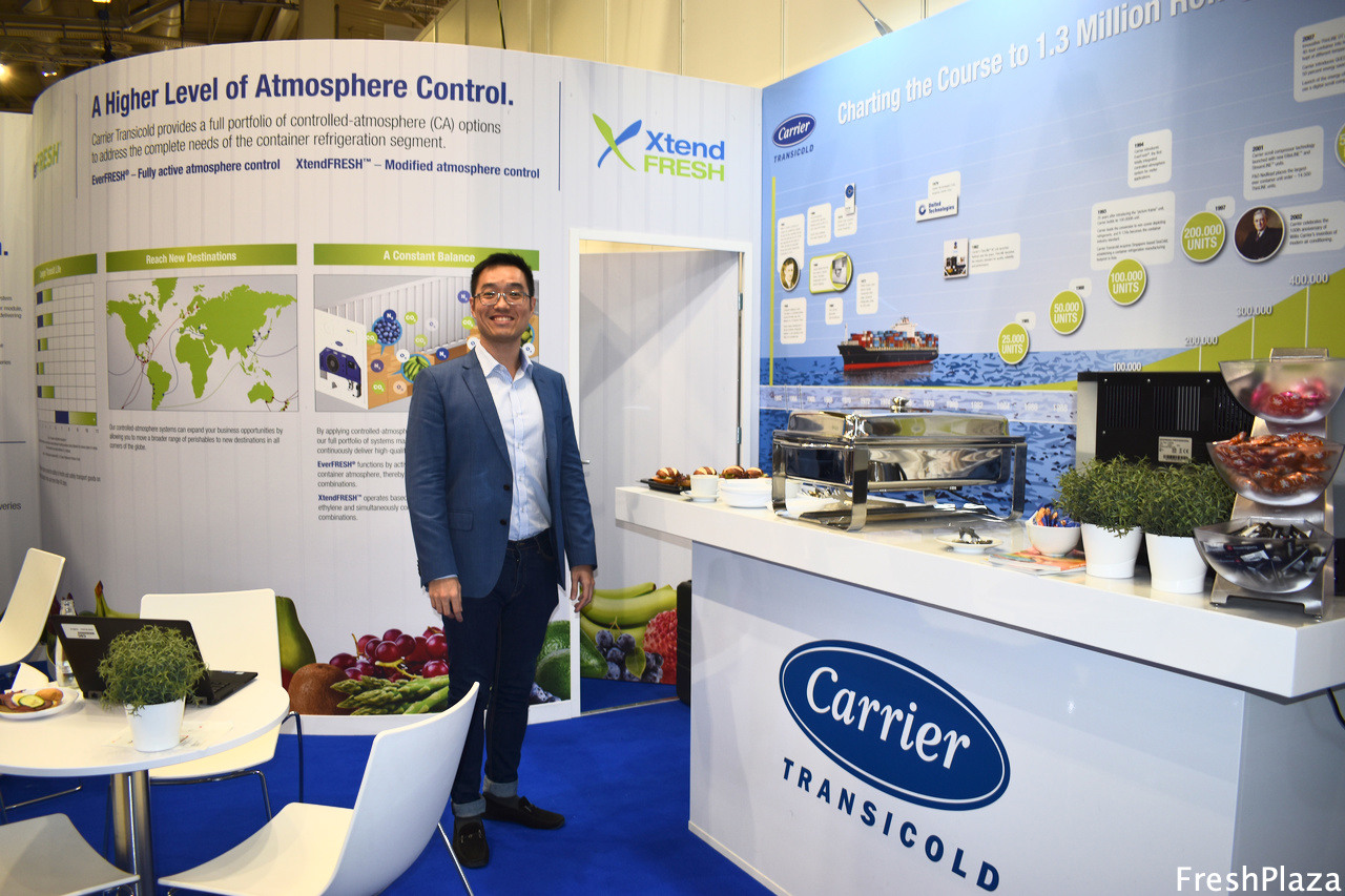Jason Fung of Oppy. This year, Oppy presented as part of a large booth run by Dole and Total Produce and they had a very busy but good show.