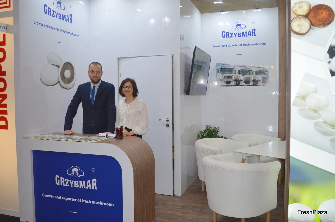 On the right is Joanna Leszko of Polish mushroom exporters Grzybmar. They had a busy fair and saw more traffic in Hall B, CityCube.