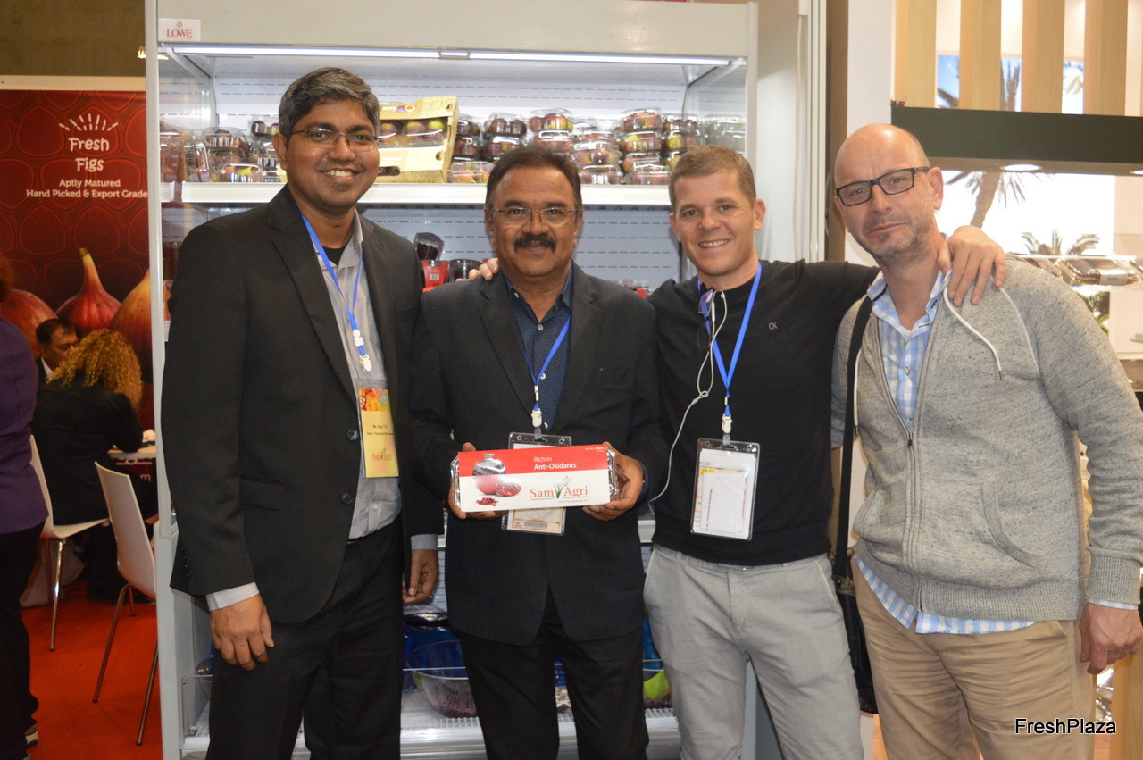 Mayur Lonkar and Shivaji Kalaskar of Phalani Fresh from India, visiting the FreshPlaza stand. They deal in processed pomegranates amongst other exotic processed fruits.