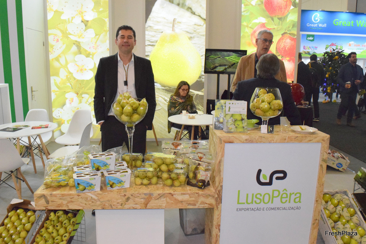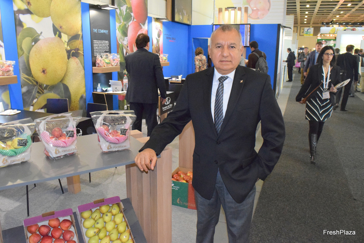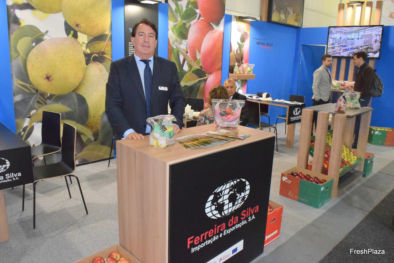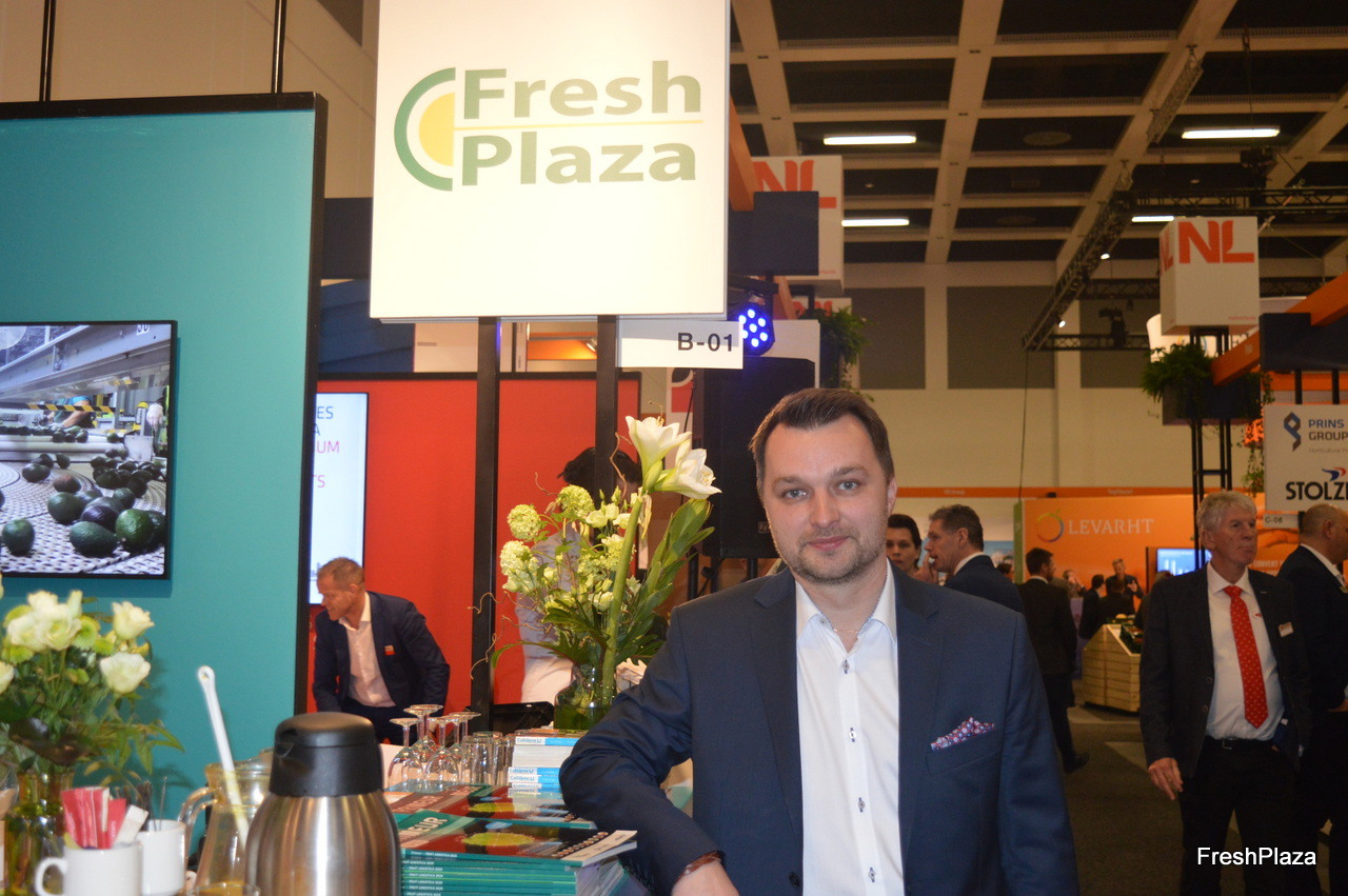 Jan Nowakowski visiting the FreshPlaza stand. Nowakowski deals in apples from Poland.