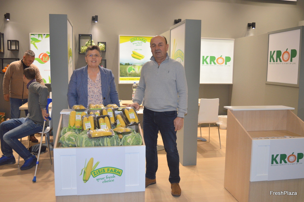 Zisis Fotios and his wife showcased Zisis Farm's corn and vegetables from Greece.