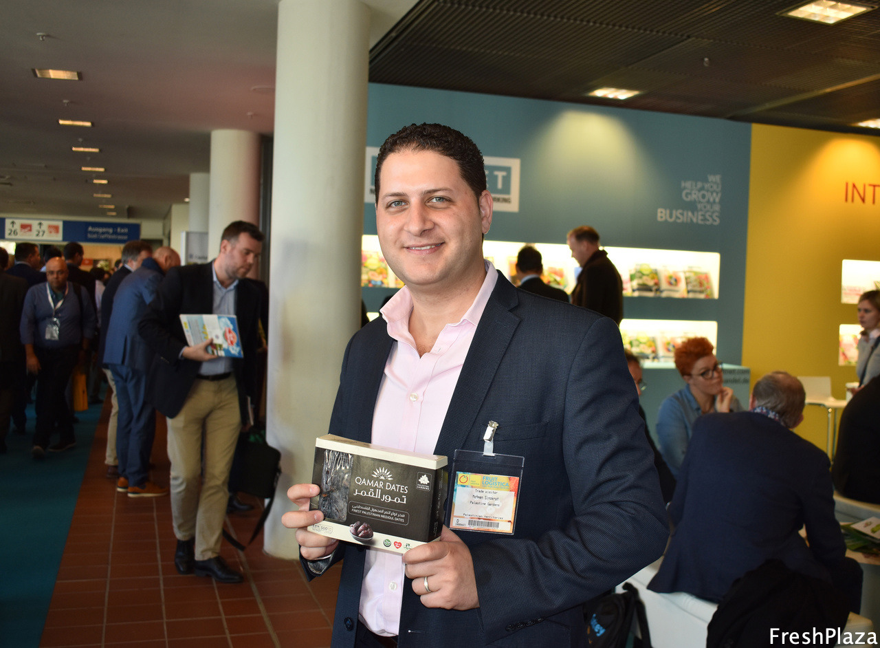Omar Ali of FinBi. Unfortunately May Salem was unable to make it to Berlin, but Omar held the fort to showcase their brand Nates'nGrapes, consisting of grapes and pomegranates from Egypt.