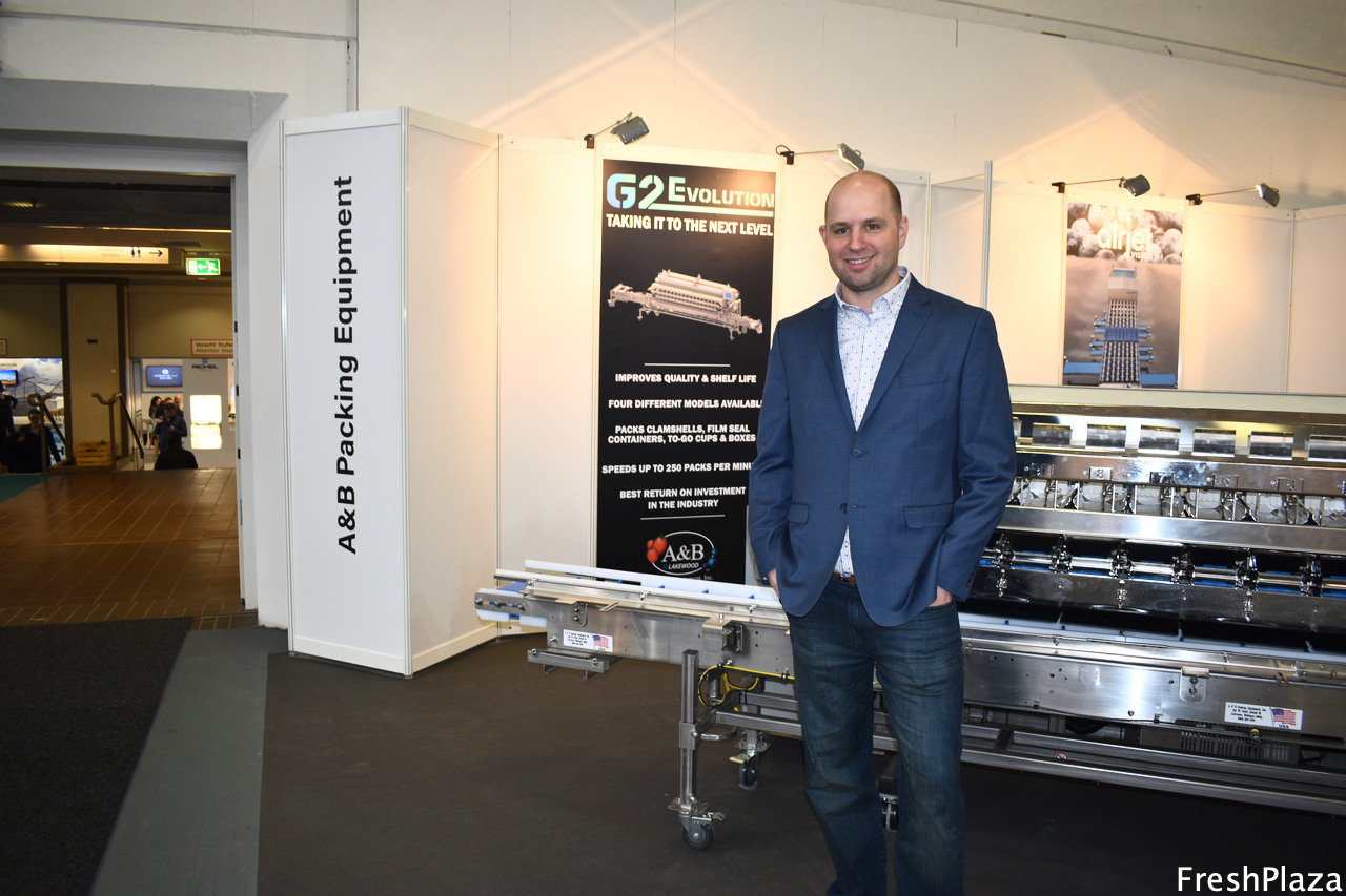 Josh Gray of A&B Packing Equipment, next to the G2Evolution packing machine.