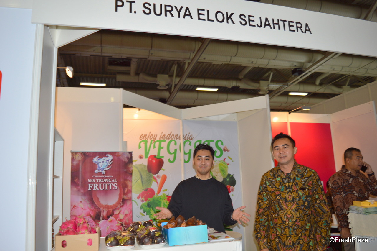 Pt. Surya Elok Sejahtera is an Indonesian company that exports a variety of tropical fruits. Mr Naufal Akbar T (left) is representing the company at the stand.