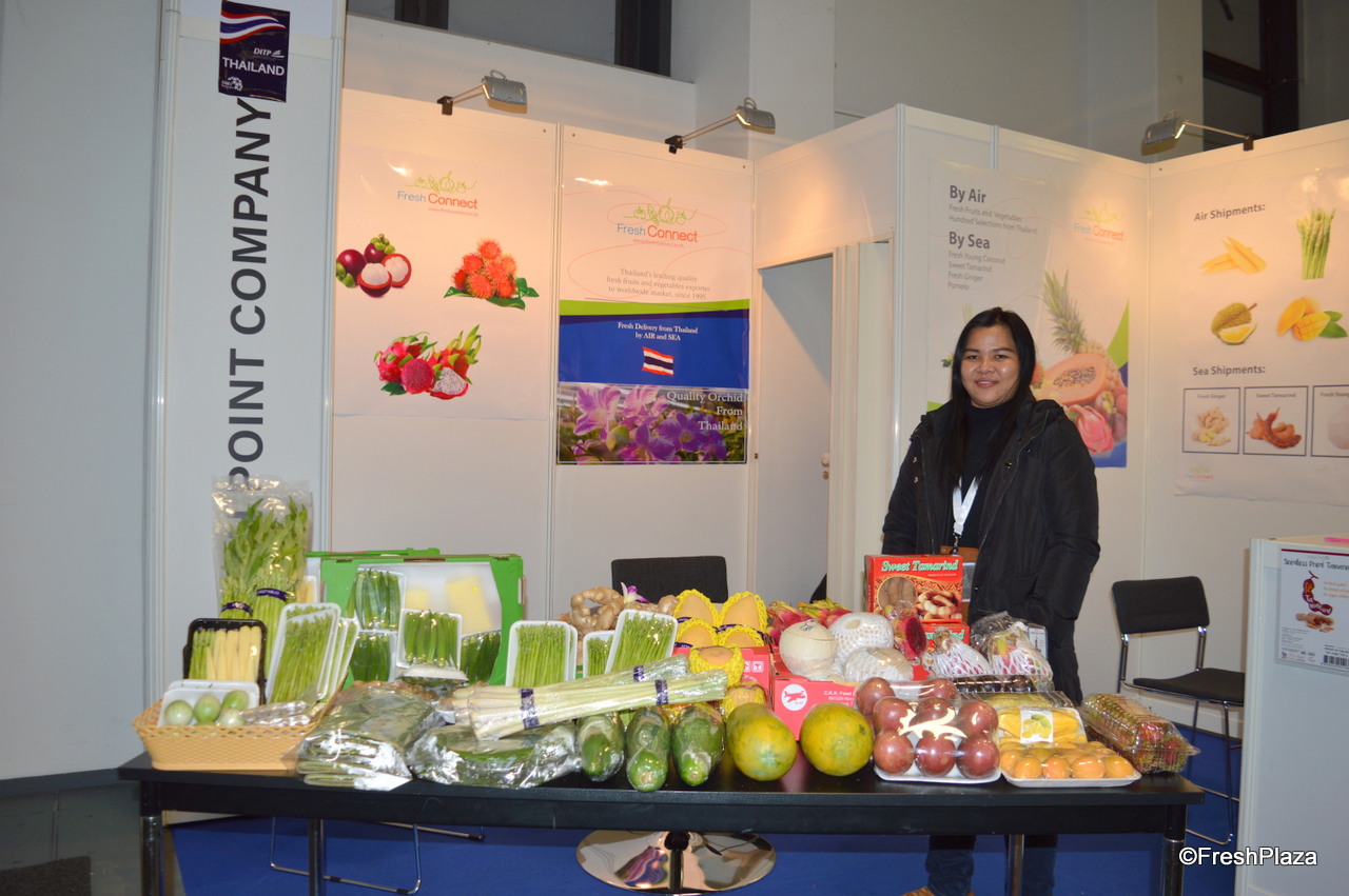 Mrs Thipsuda Promnamsub of Fresh Point Company Limited is at her booth. The company exports a variety of tropical fruits from Thailand. Thipsuda said this is a pretty good fair and she had many quality meetings with clients.