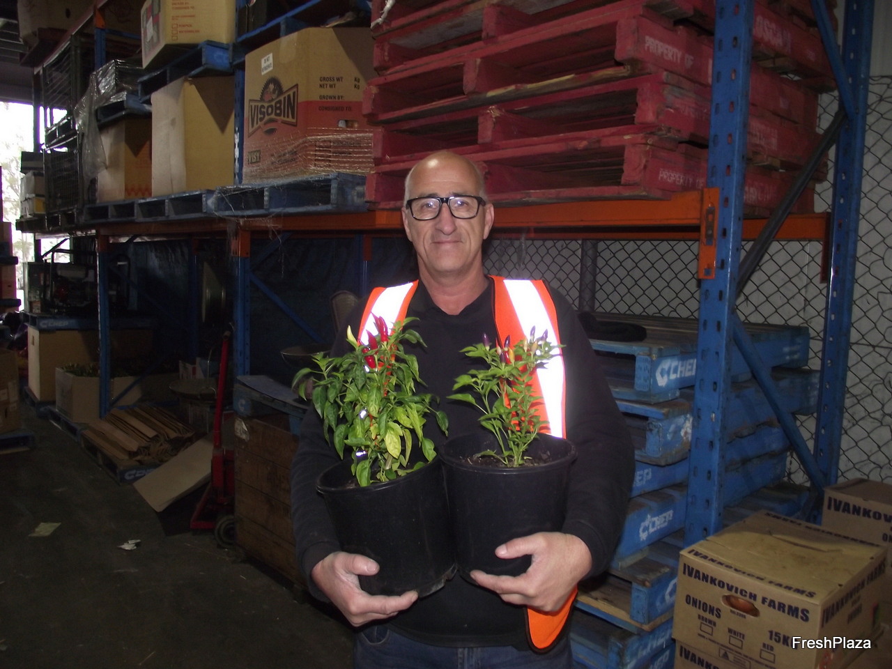 Anthony Spartalis from Country Crisp showing the purple chilli plant