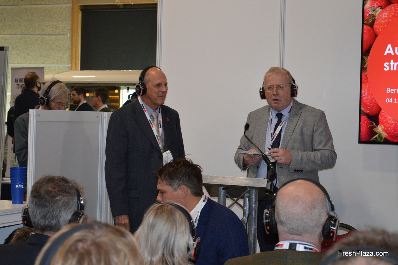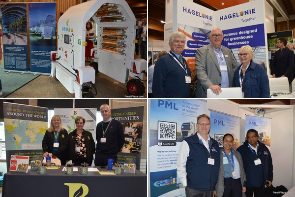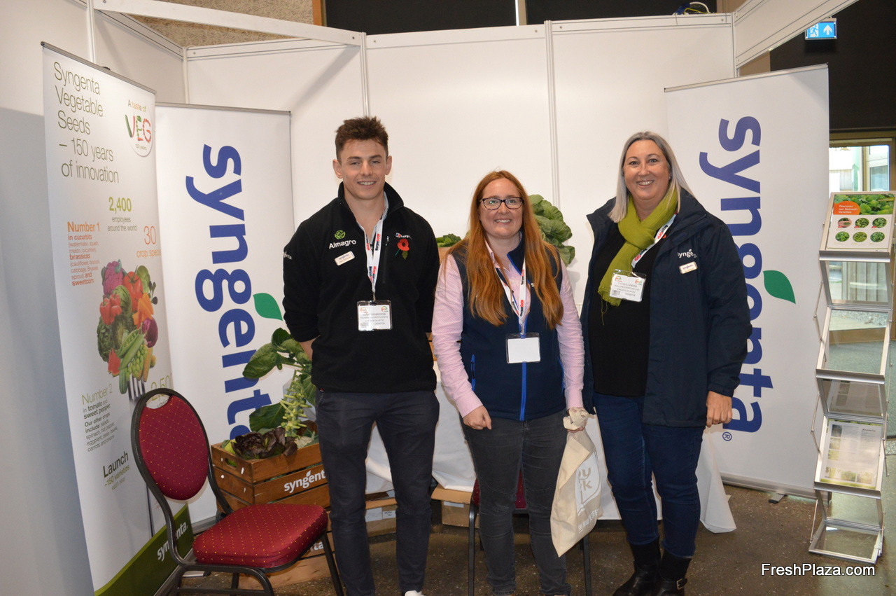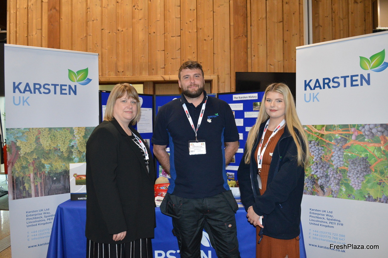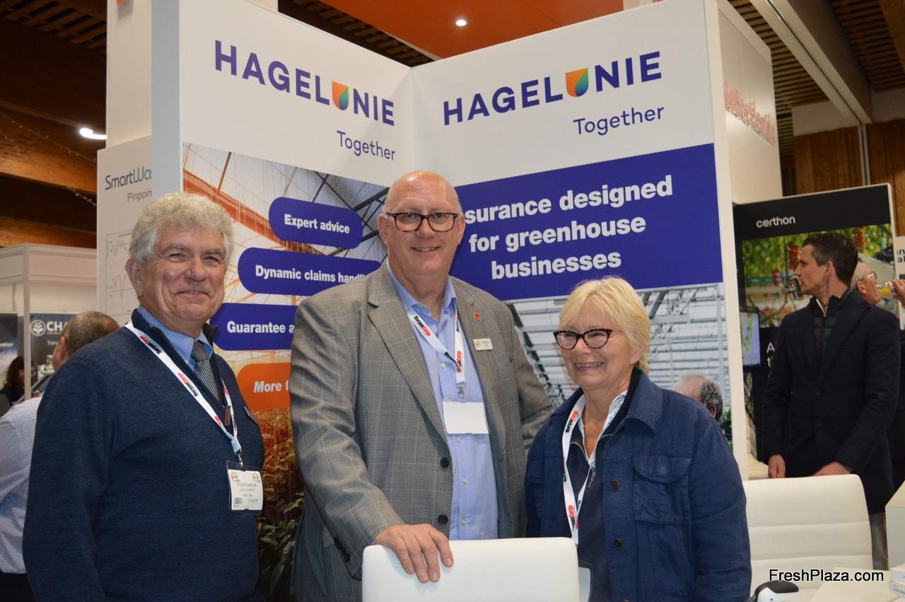 Kevin Robinson - left and Sandra Ansley - right from HagelUnie which provides insurance for horticultural industry which Nigel Jenny - centre CEO of Fresh Produce Consortium the organisers of the event.