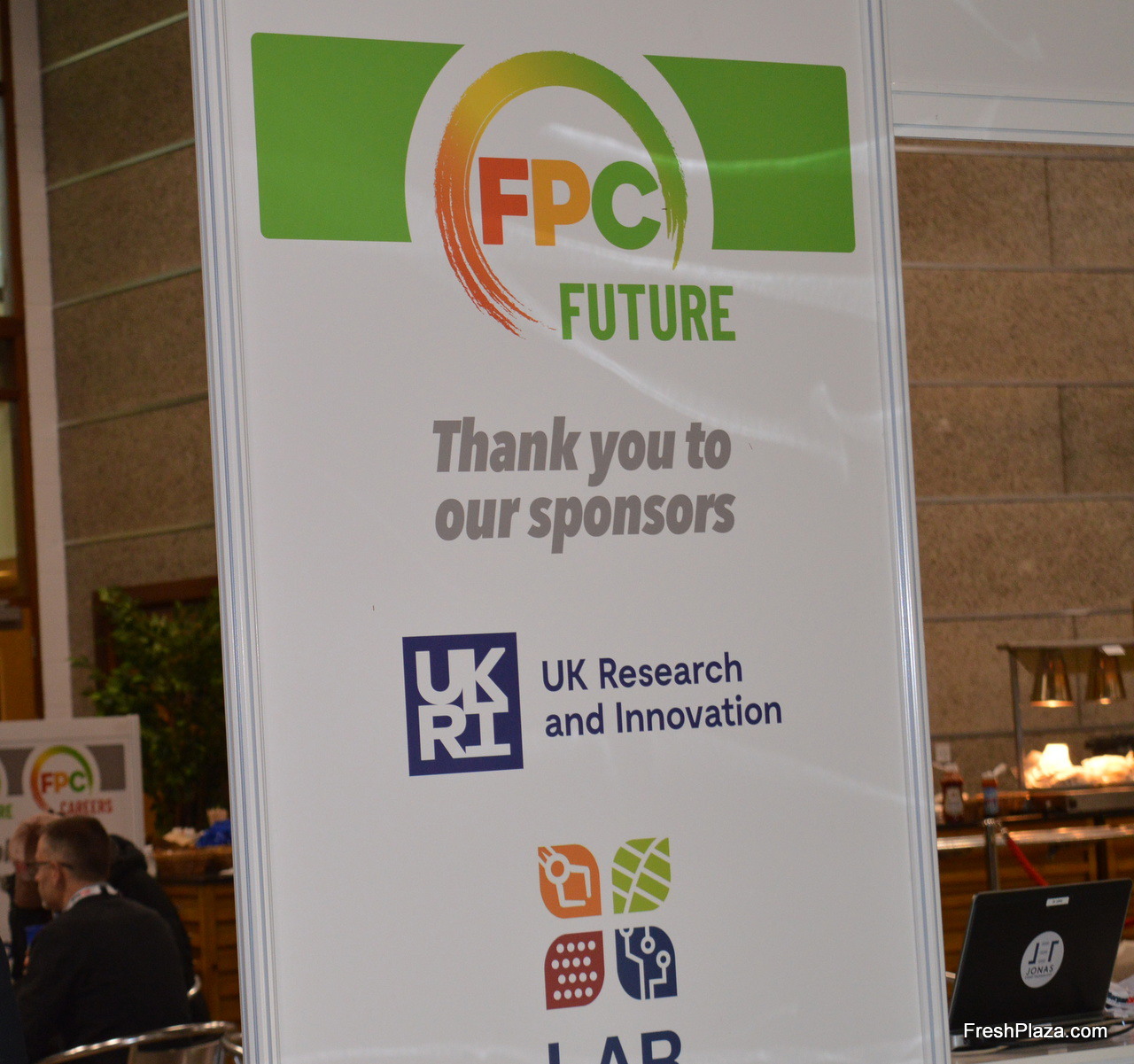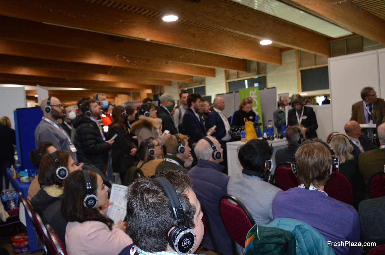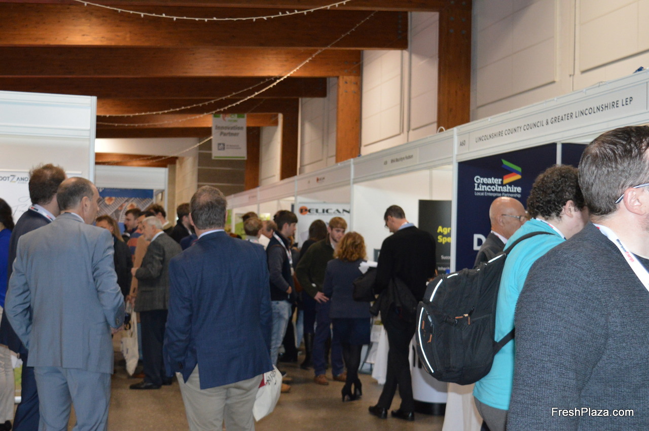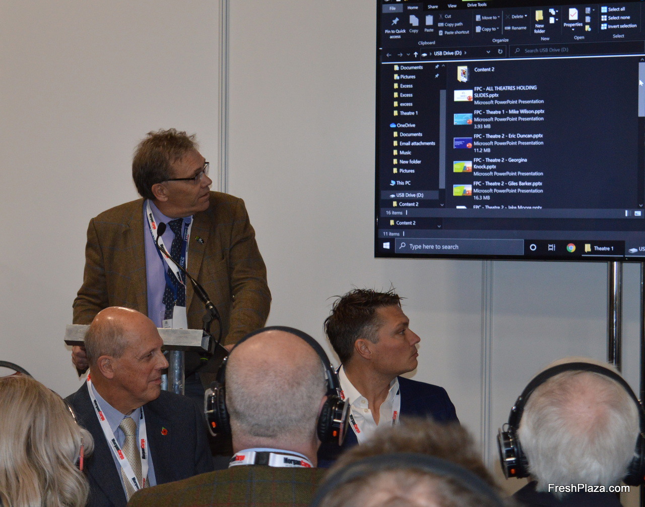 Kevin Robinson - left and Sandra Ansley - right from HagelUnie which provides insurance for horticultural industry which Nigel Jenny - centre CEO of Fresh Produce Consortium the organisers of the event.