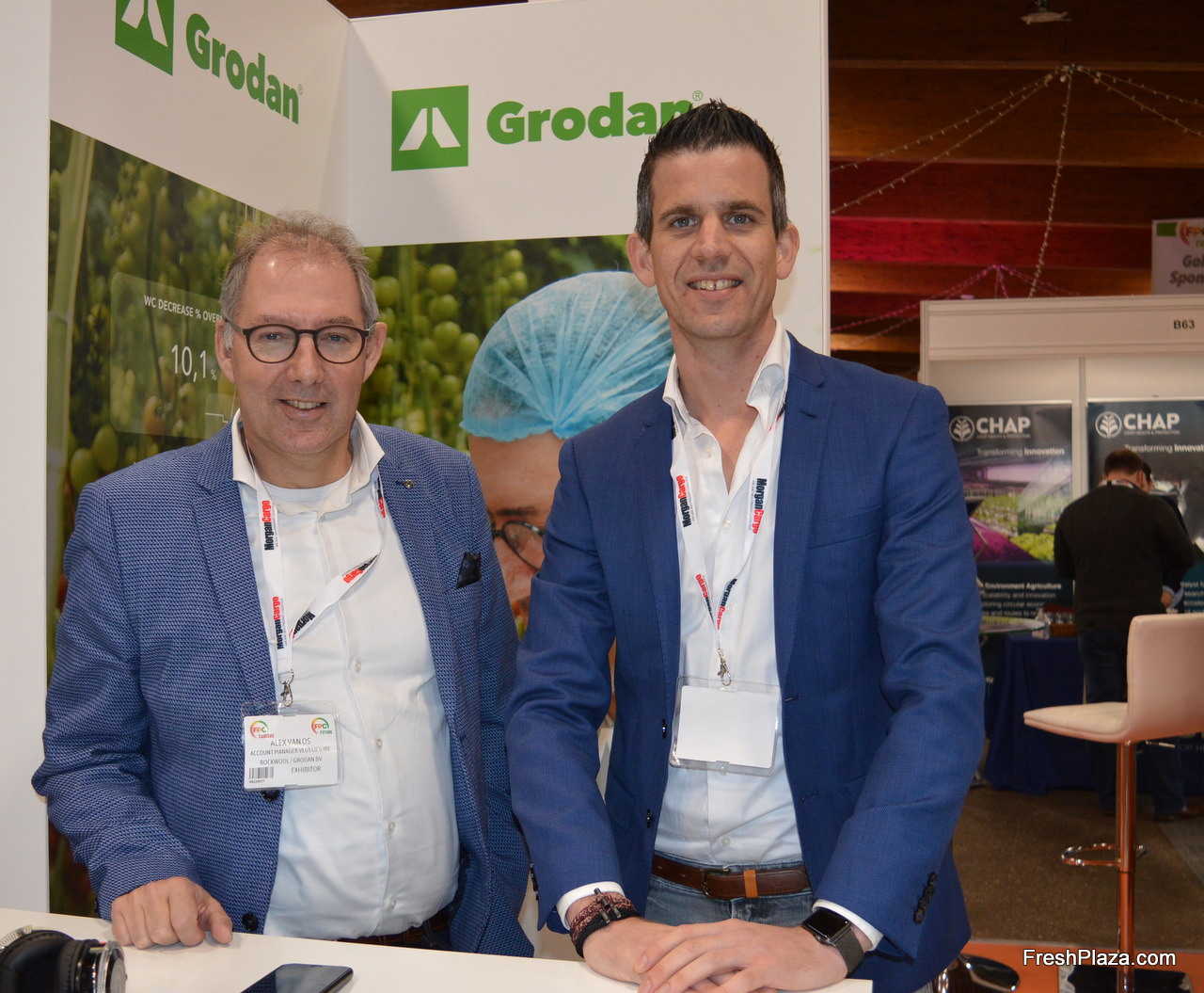 Alex van Os and Dennis Arnts from Grodan. The company produces substrates and sytems to help the grower - Egrow. They are also starting a new project which turns old rock wool in to stone to build houses.