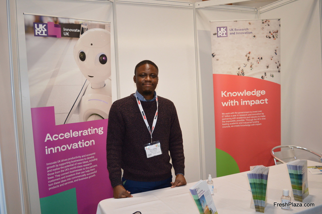 Paul Laniran at the UKRI stand, the organisation provides funding for new and innovative projects in the sector.