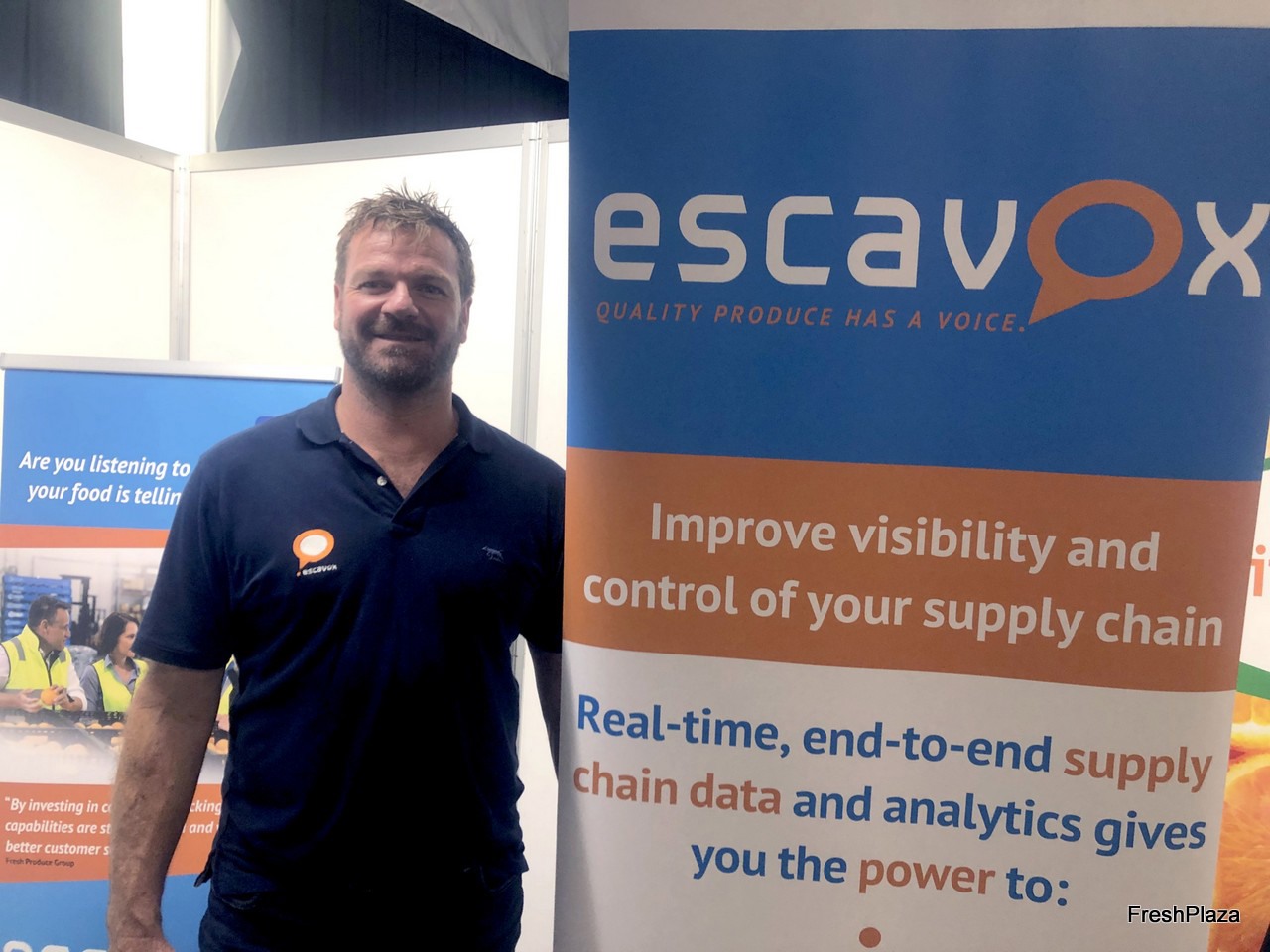 Christian Patterson from Escavox presenting about the benefits of the company's data-tracking system.