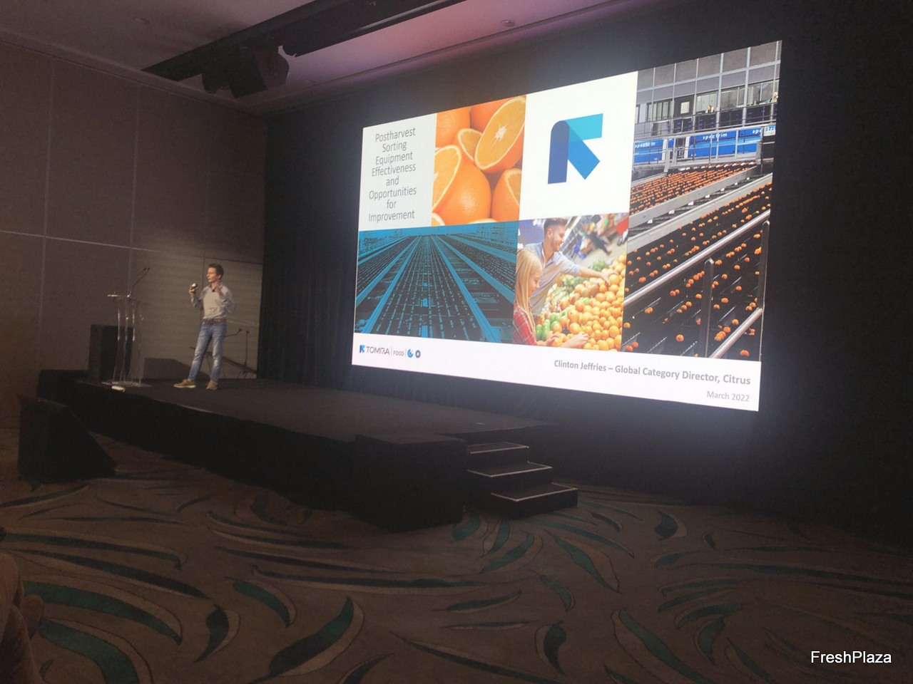 Clinton Jeffries from Tomra Foods presenting on Postharvest Sorting Equipment Effectiveness.