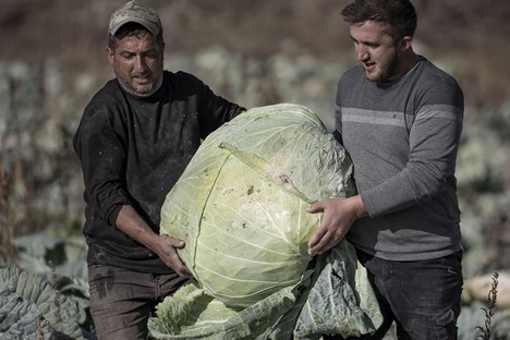 Turkish farmers harvest 50 kilogram cabbages in Pasinler Valley