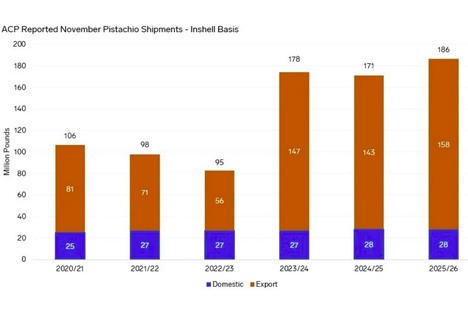 U.S. pistachio November shipments up 8.8 percent compared to November 2024