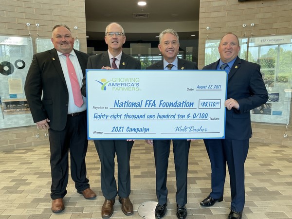 Left to right: Cliff Riner, G&R Farms; Scott Stump, chief executive officer, National FFA; Walt Dasher, G&R Farms; Jim Williams, executive director of development, National FFA Foundation.