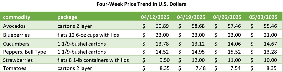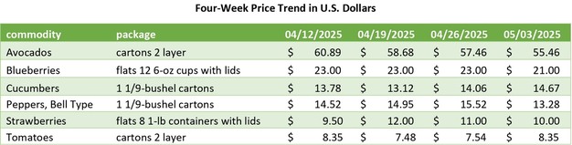 This report provides an overview of the volume and prices of seasonal perishable commodities in the current week. Volume data reflects the latest figures, while prices represent open (spot) market sales by first handlers for products of generally good quality and condition. Seasonal changes have shifted the focus of this report, with blueberries replacing asparagus due to declining asparagus shipments and rising blueberry demand.