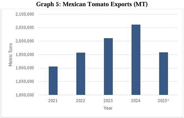 On April 14, 2025, the U.S. Department of Commerce announced plans to terminate the 2019 Tomato Suspension Agreement, with a 20.91% anti-dumping duty (ADD) on most Mexican tomato imports set to take effect on July 14, 2025. This change is expected to reduce investment and planting among export-oriented producers.