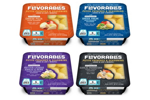 Flavorables pairs premium petite yellow potatoes with pre-portioned, chef-crafted Spiceology seasoning blends. The blends amplify the flavor of petite potatoes while leveraging popular foodservice-inspired flavor profiles that resonate with today's shoppers: Butter-licious, Garlic Parmesan, Cheese Pizza, and Greek Freak. Made with premium-grade spices and real ingredients—nothing artificial—the seasonings bring contemporary tastes directly into the produce department.